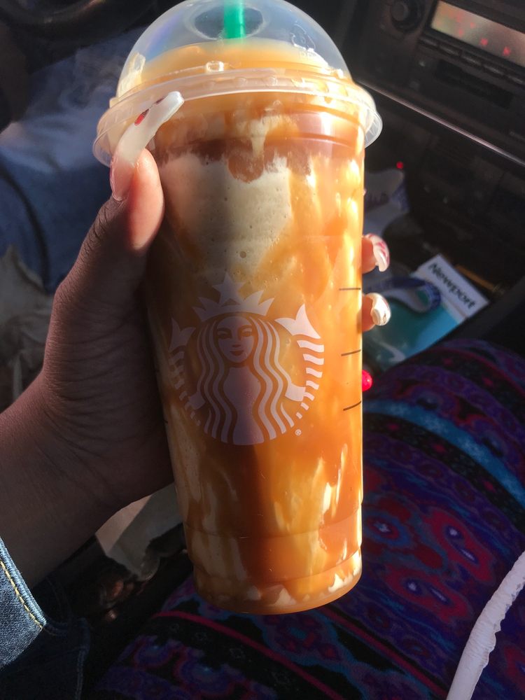 Buttery caramel syrup is blended with milk and ice. Topped with a layer of dark caramel sauce, whipped cream, caramel drizzle, and crunchy caramel sugar topping.